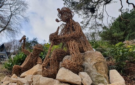 Five intricate willow sculptures that depict important moments in the history of Masson Hill, paused in time.